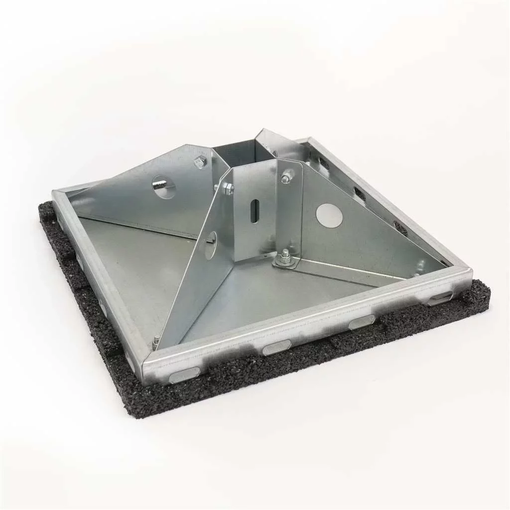 Supporting element capable of bearing heavy loads. Does not require ankering to concrete slabs. Protects existing roof water-proofing...